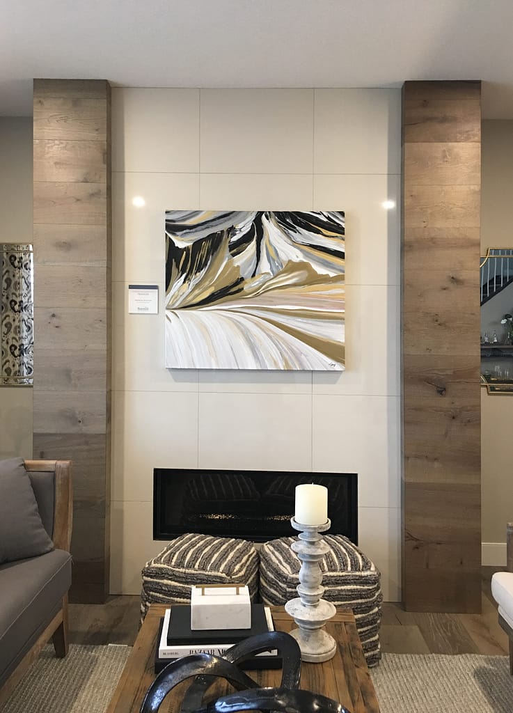 This painting was sold to a local new home builder: Baywest Homes in Harmony, just outside of Calgary. It is hanging over the fireplace and looks like it was made for the space.